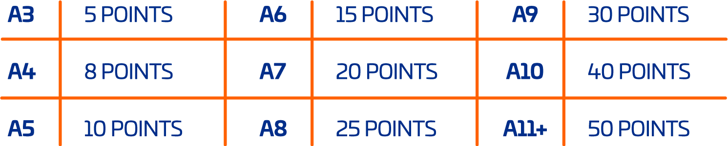 Points are earned based on rank advancing higher than your base rank. You earn points based on the highest new rank you achieved during the qualification period and whichever point is highest.